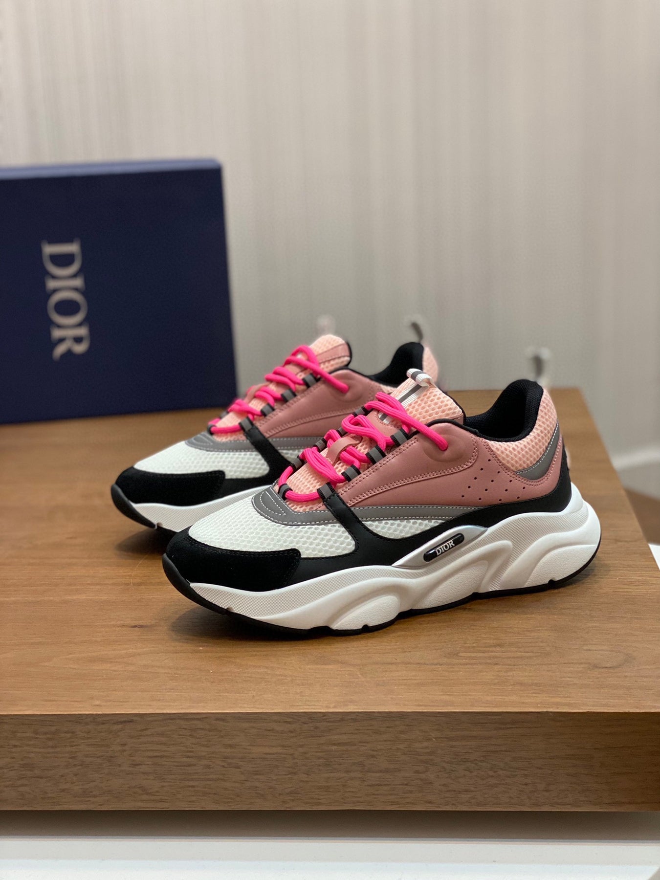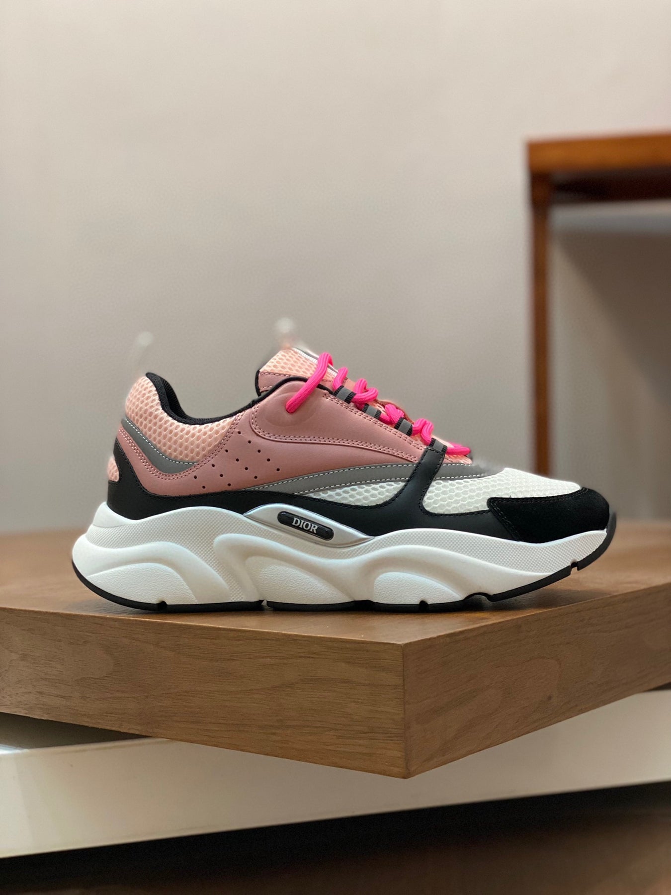 The thick low-top design features a durable embossed rubber sole, offering stability, comfort, and excellent wear resistance. The side showcases a subtle embossed “Di~r” logo, highlighting brand recognition and refined style.
