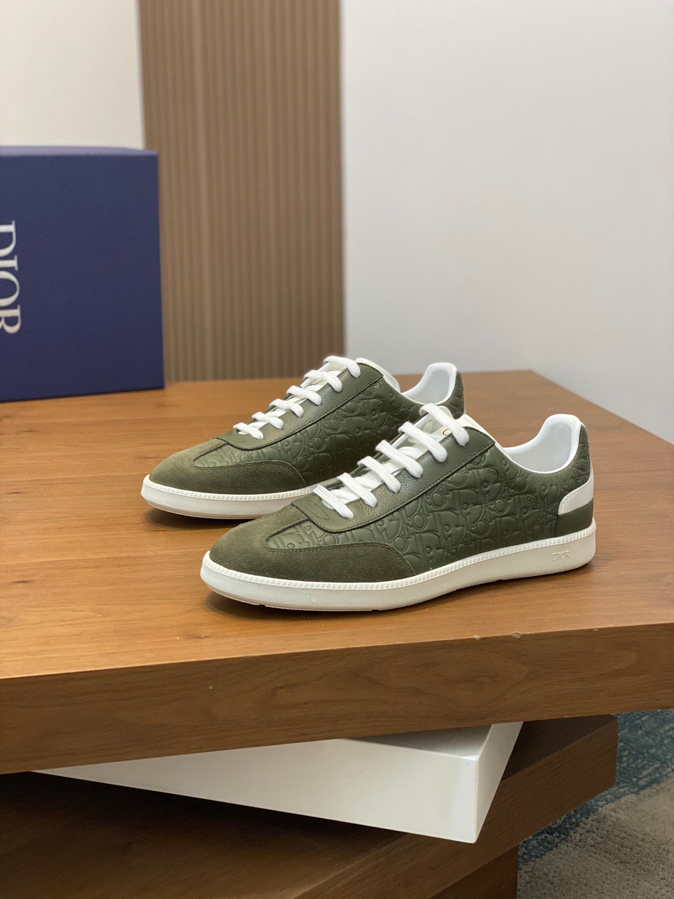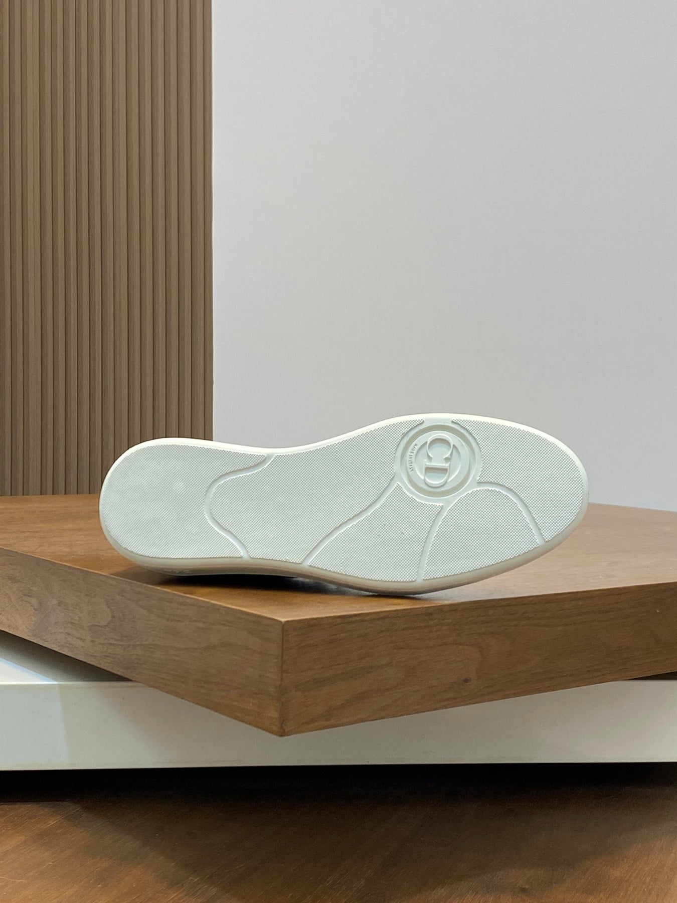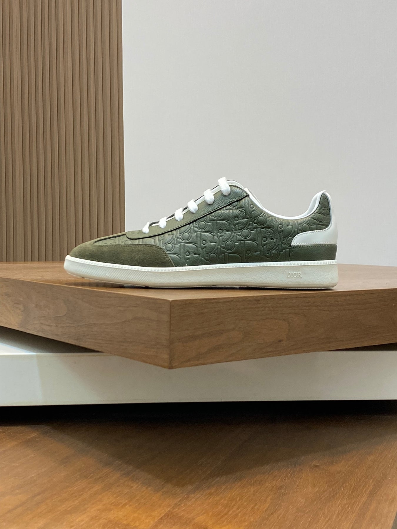 The thick low-top design features a durable embossed rubber sole, offering stability, comfort, and excellent wear resistance. The side showcases a subtle embossed “Di~r” logo, highlighting brand recognition and refined style.