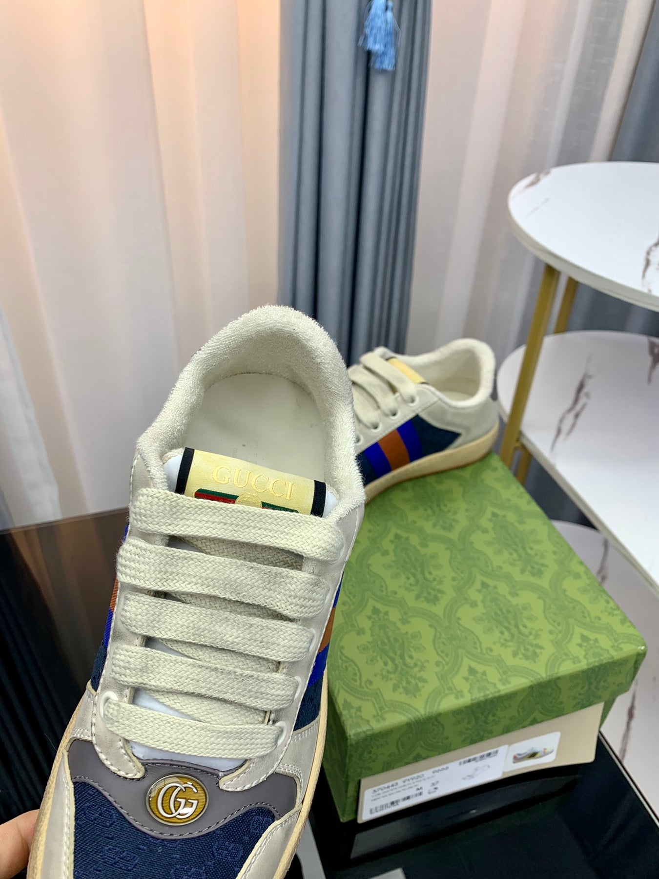 Crafted from imported top-grain leather, paired with breathable mesh lining and finished with a dual-tone TPU sole, these sneakers ensure both comfort and durability. The signature interlocking GG emblem is subtly integrated, offering a refined interpretation of Gucci’s timeless aesthetic.