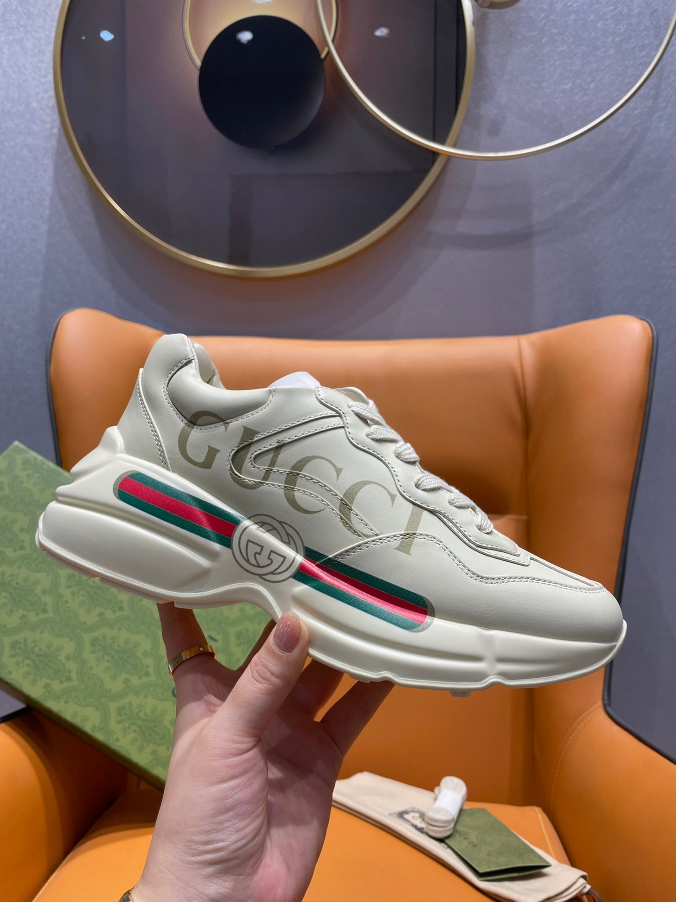 Crafted from imported top-grain leather, paired with breathable mesh lining and finished with a dual-tone TPU sole, these sneakers ensure both comfort and durability. The signature interlocking GG emblem is subtly integrated, offering a refined interpretation of Gucci’s timeless aesthetic.