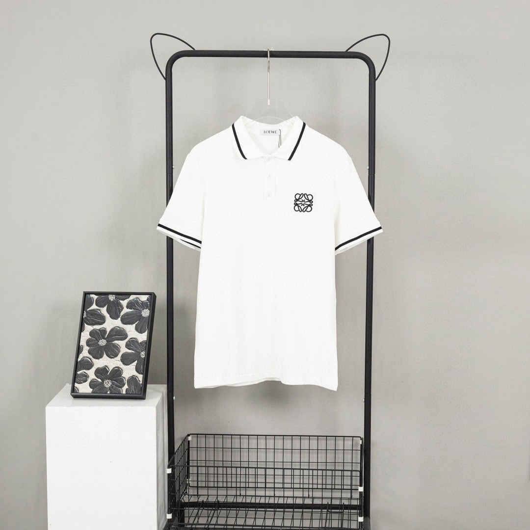 LOEWE K491 Contrast-Detail Polo Shirt | XS–L (White & Black)