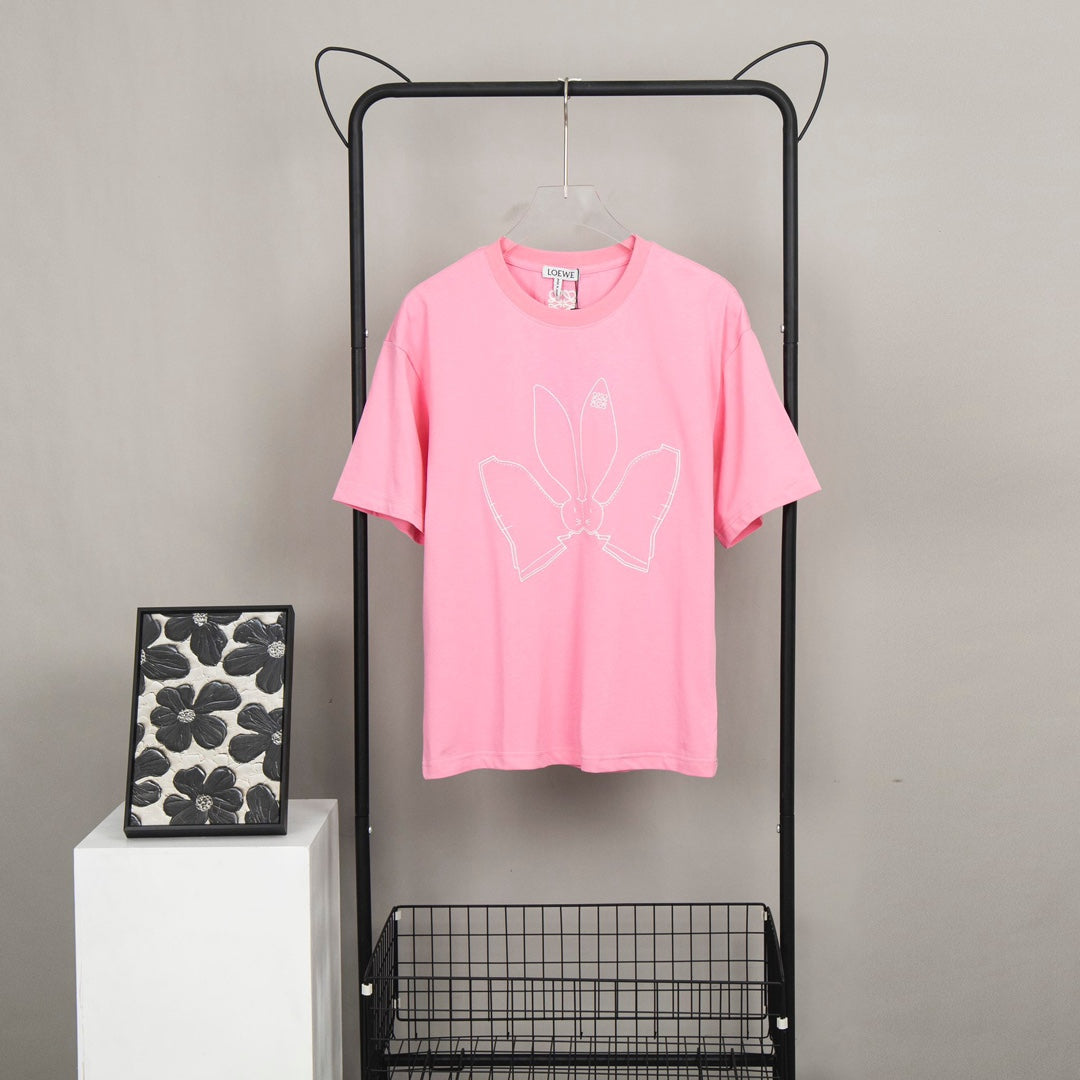 LOEWE 2023SS Year of the Rabbit Embroidered T-Shirt | XS–L (Pink, Black)