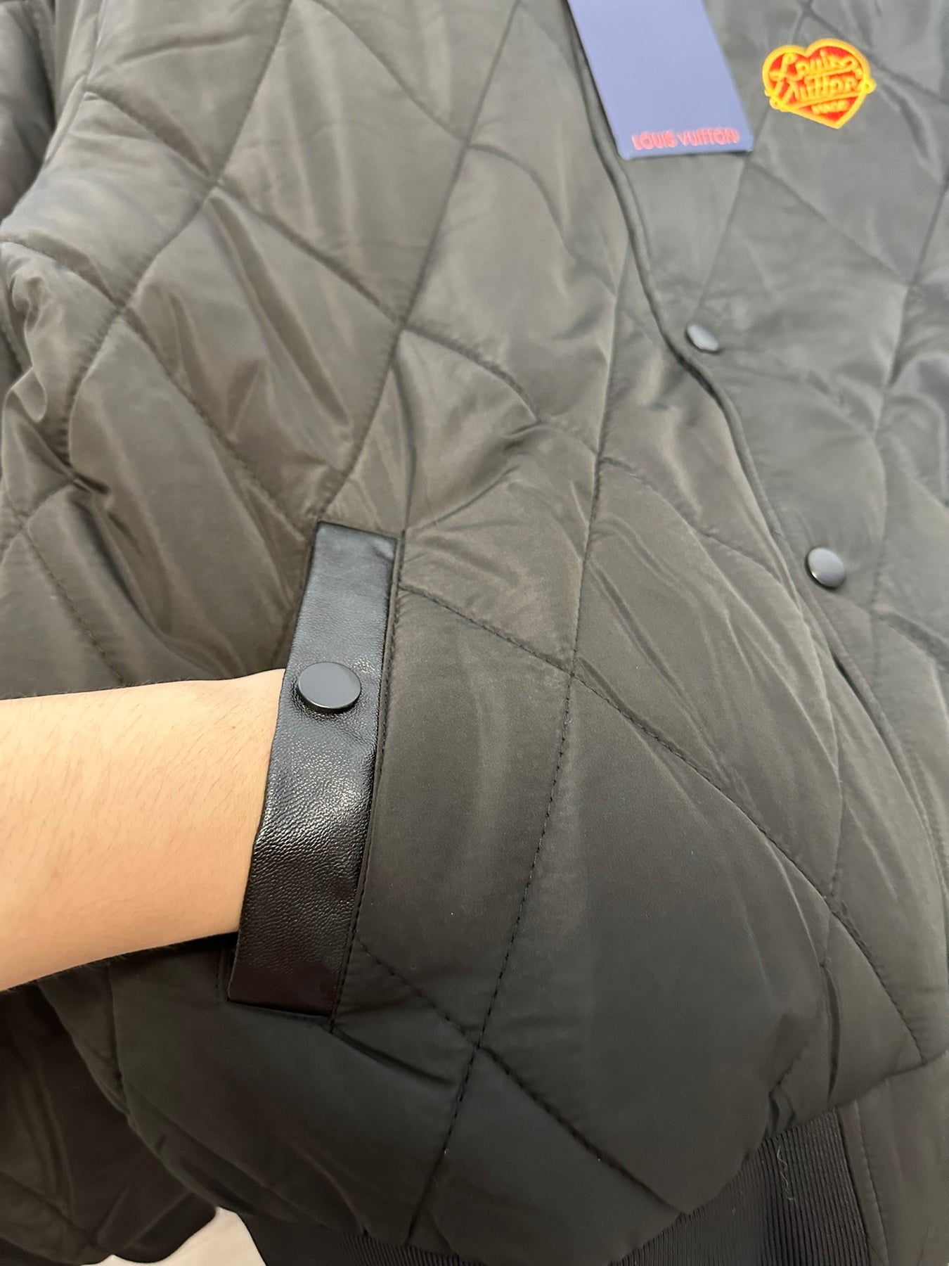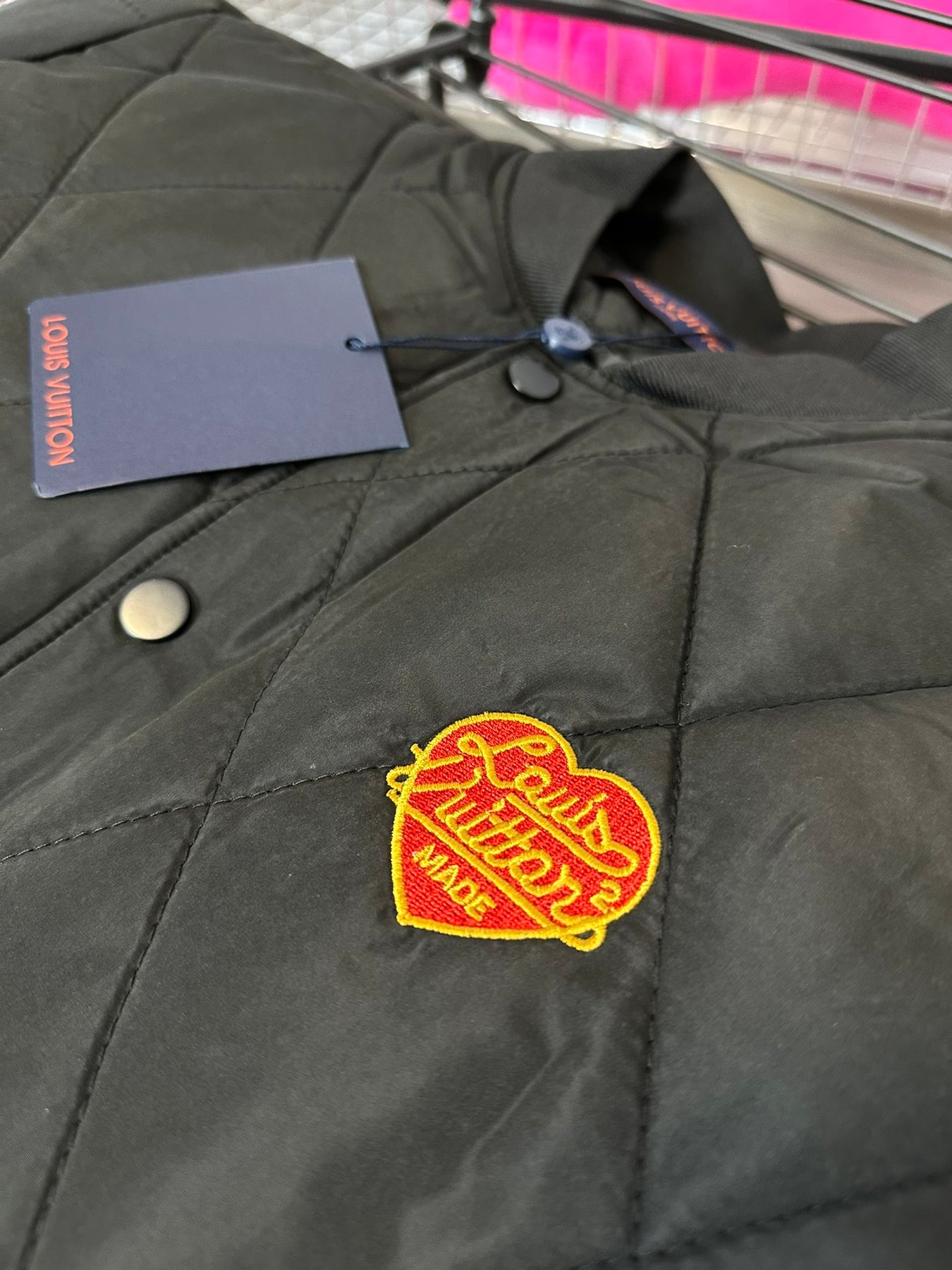 The Louis Vuitton Embroidered Puffer Jacket highlights its signature chest embroidery, the defining detail that elevates this piece into a statement of understated luxury. With a refined dark aesthetic, this jacket embodies effortless sophistication while remaining versatile for everyday wear.