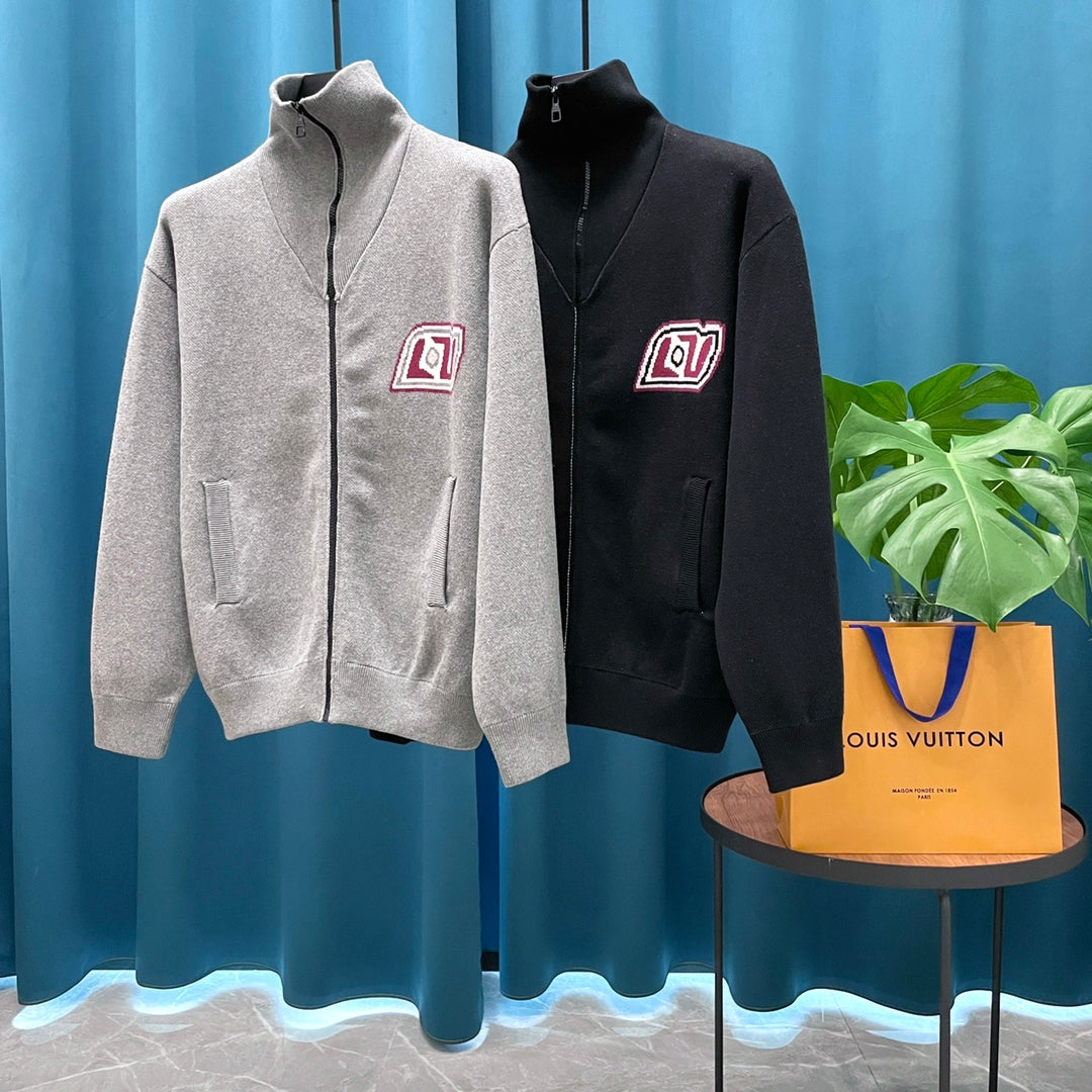 LV Louis Vuitton Jacquard Logo Wool Knit Cardigan | Unisex Heavyweight Luxury Sweater