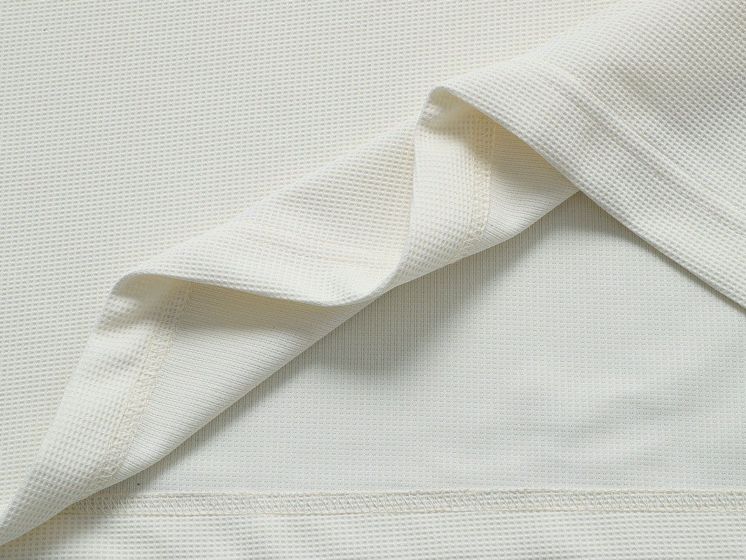 Crafted from premium boutique fabric, this polo features a waffle-knit texture and top-quality two-tone sleeve stripes, delivering a subtle yet striking aesthetic. Designed with a relaxed, oversized fit, it offers exceptional comfort and versatility, perfect for both men and women seeking effortless luxury.