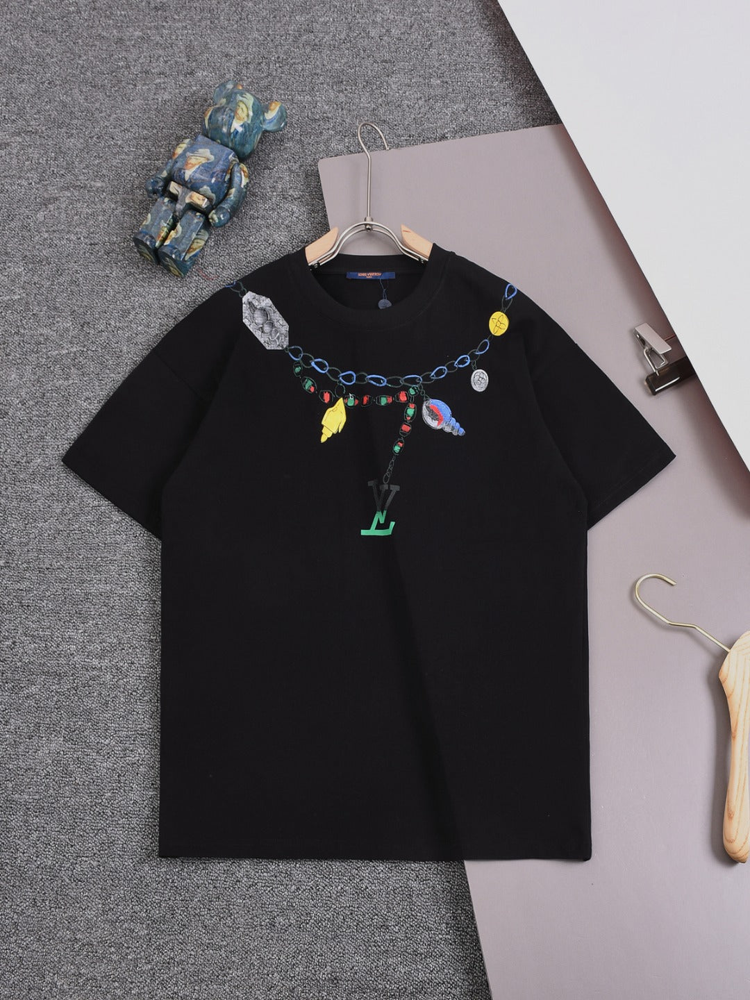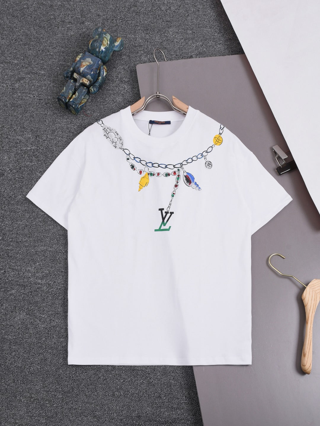 Louis Vuitton 25SS Pendant Necklace Round Neck Cotton T-Shirt – White / Black, XS-L