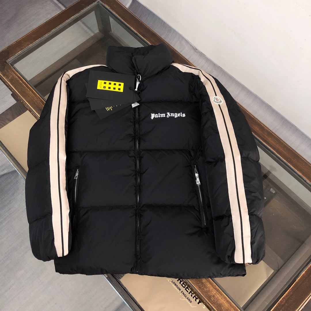 Moncler x Palm Angels 2024 Down Jacket | Unisex Striped Sleeve Logo Design (Sizes 1–5)