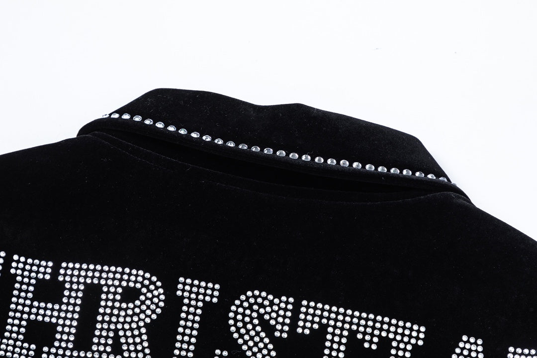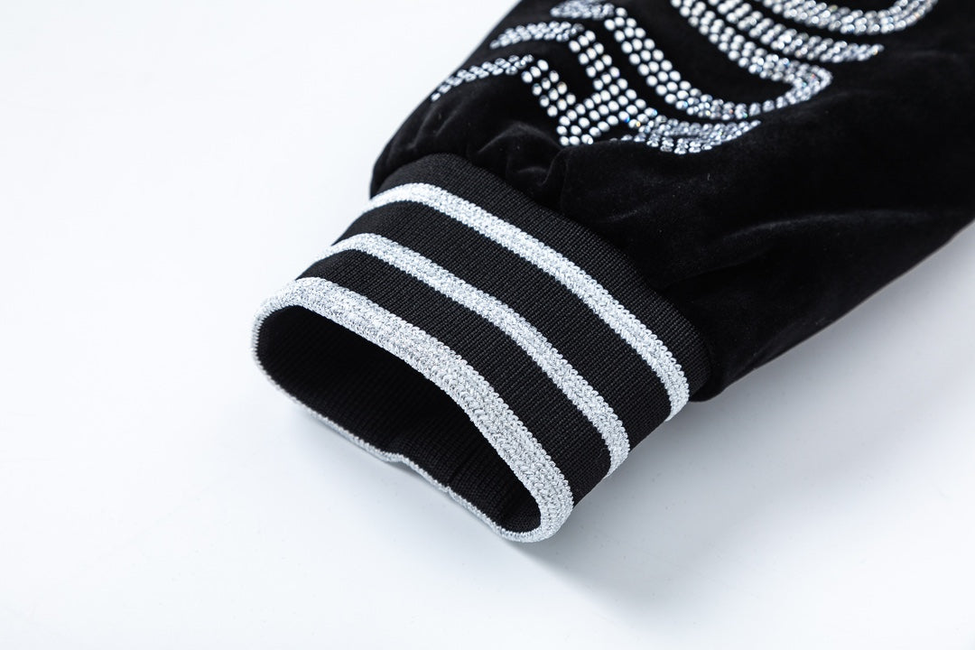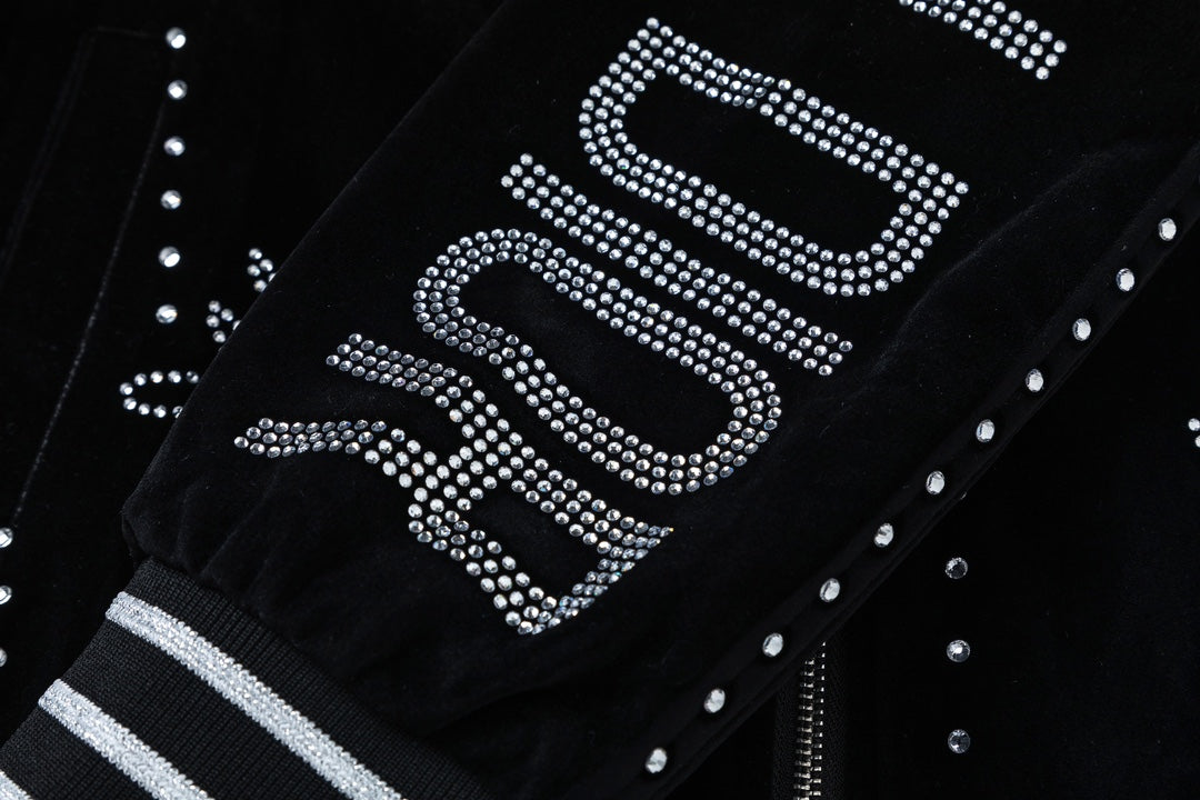 Unveiling the DIOR 2024 Autumn/Winter Men’s Baseball Jacket, a striking fusion of timeless elegance and contemporary edge. Crafted from exclusive custom velvet, this piece showcases DIOR’s mastery of texture and detail. The signature all-over logo is reimagined through precision crystal embellishment, creating a refined brilliance that elevates the jacket into a true statement of luxury.